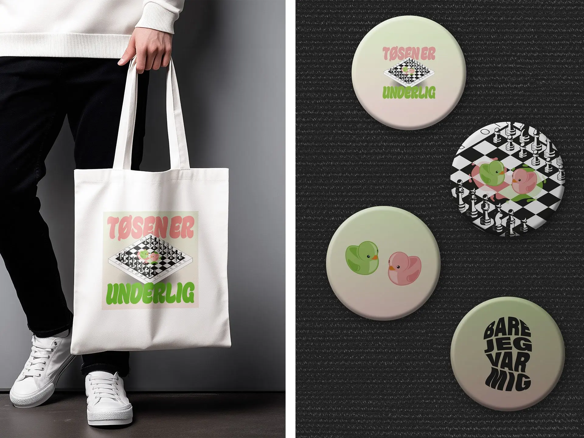 Til mit interview med min kunstner Barejegvarmig, der fik vi aftalt hvad der kunne være fedt som et extra produkt jeg kunne lave, her lande vi på noget merchandise, specifikt en mulepose og nogle badge's da det er småt men effektiv markedsføring.